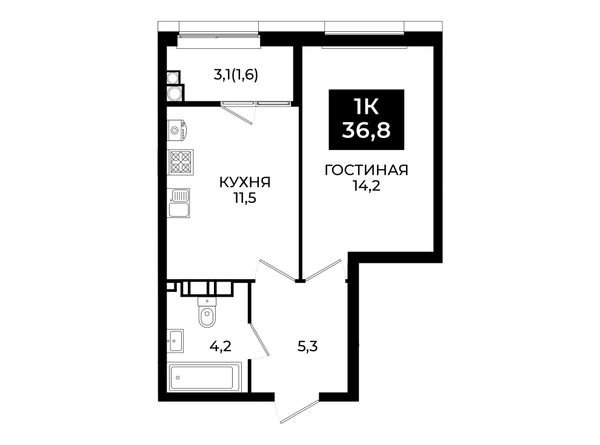 1-комнатная — 36,8 м²