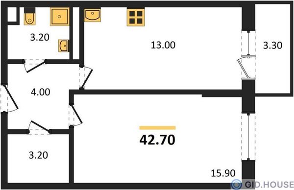 1-комнатная — 38,5 м²