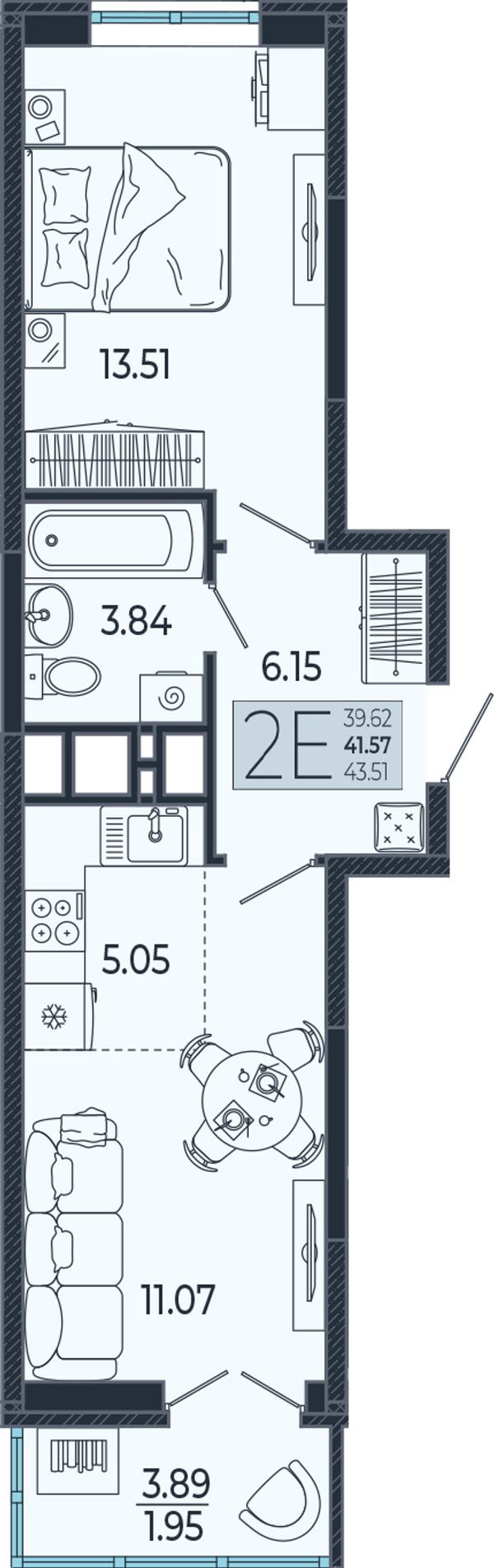 1-комнатная — 41,6 м²