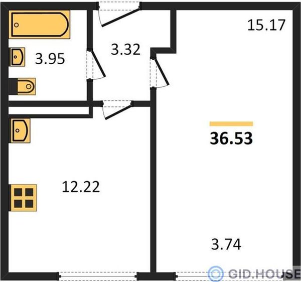 1-комнатная — 36,53 м²