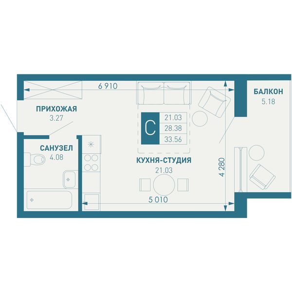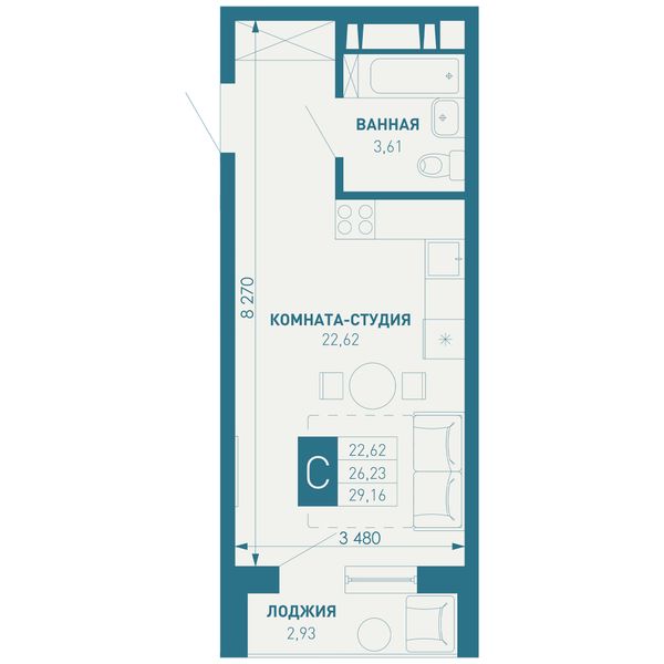 Студия — 42,06 м²