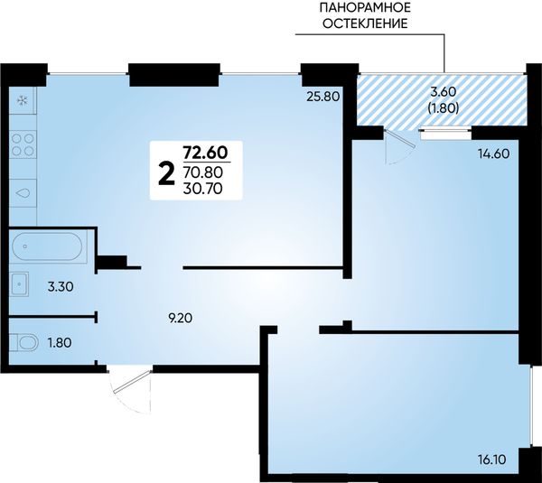 2-комнатная — 69,8 м²