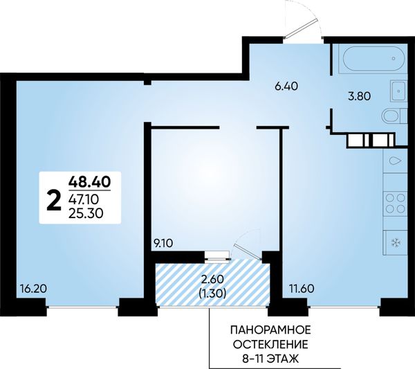 2-комнатная — 48,4 м²