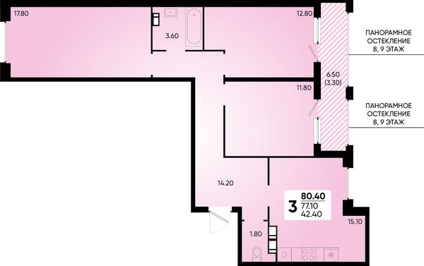 3-комнатная — 80,4 м²