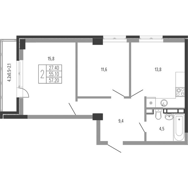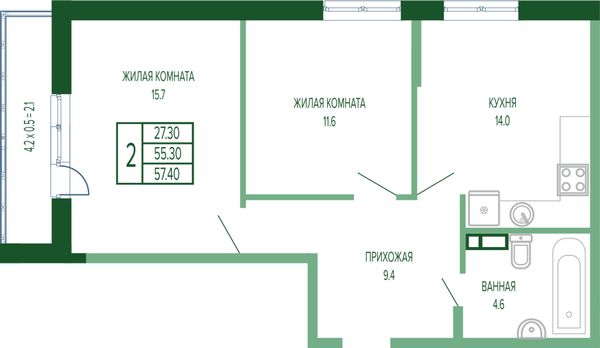 2-комнатная — 58,4 м²