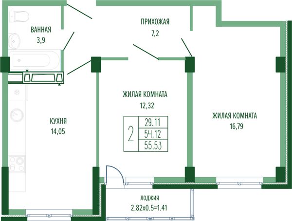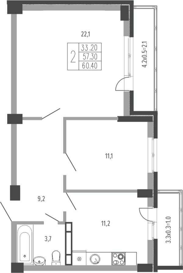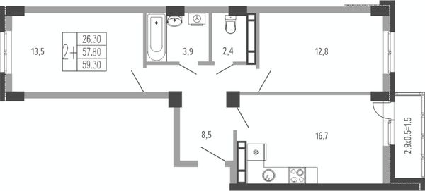 2-комнатная — 58,5 м²