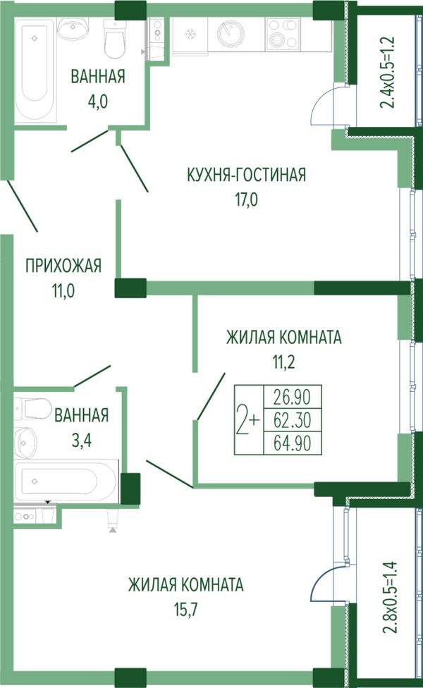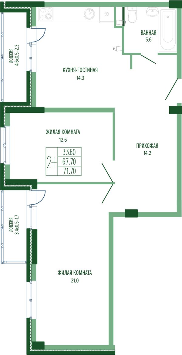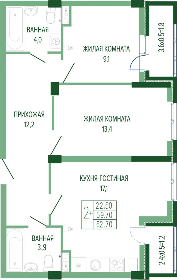 Купить двухкомнатную квартиру в ЖК «Екатерининский парк» в Краснодаре