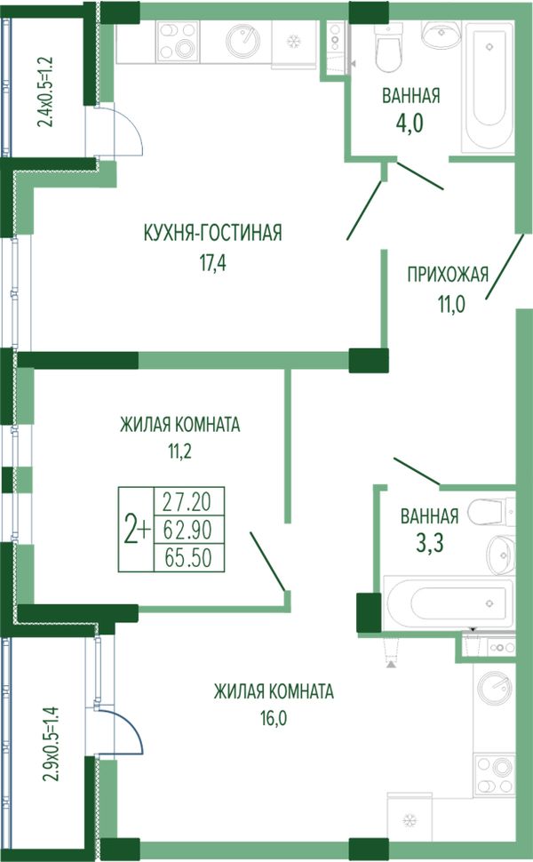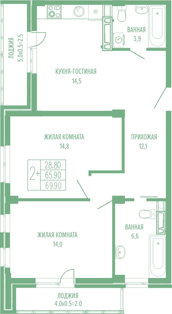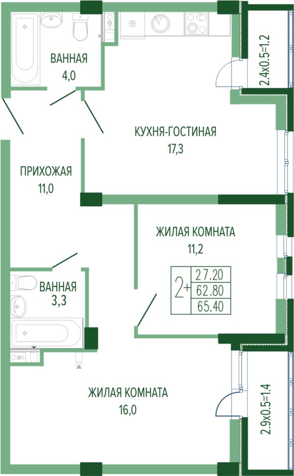2-комнатная — 66,25 м²