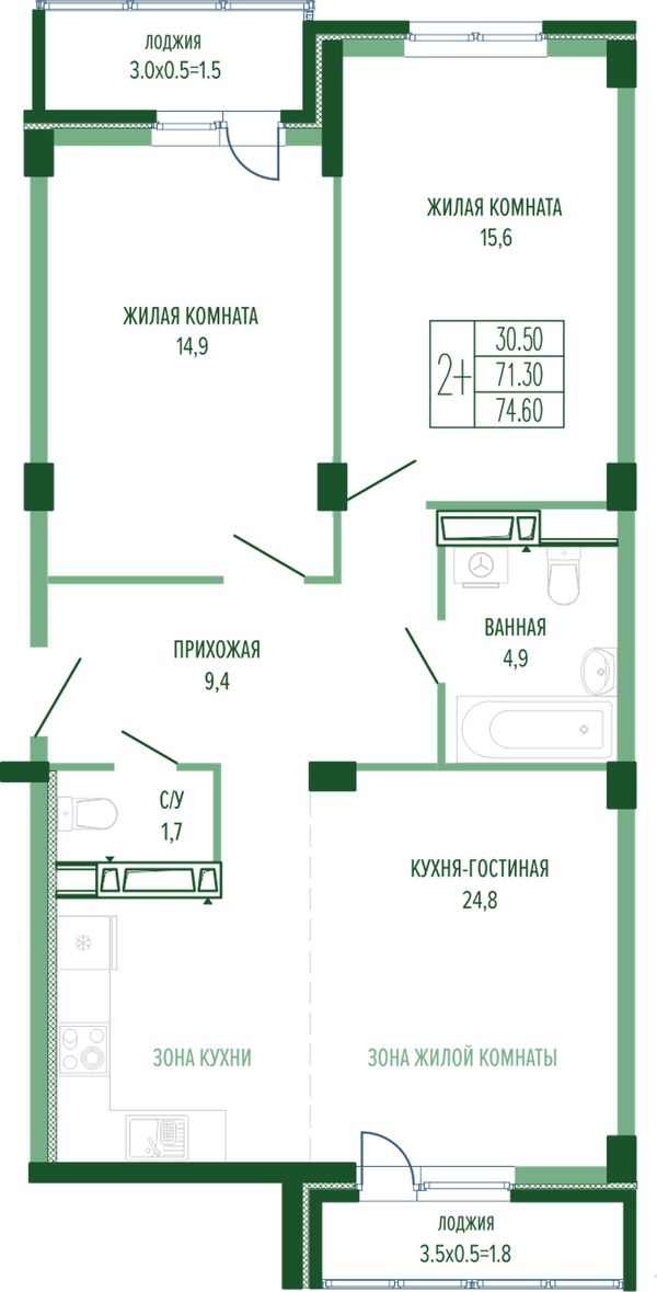 2-комнатная — 73,3 м²