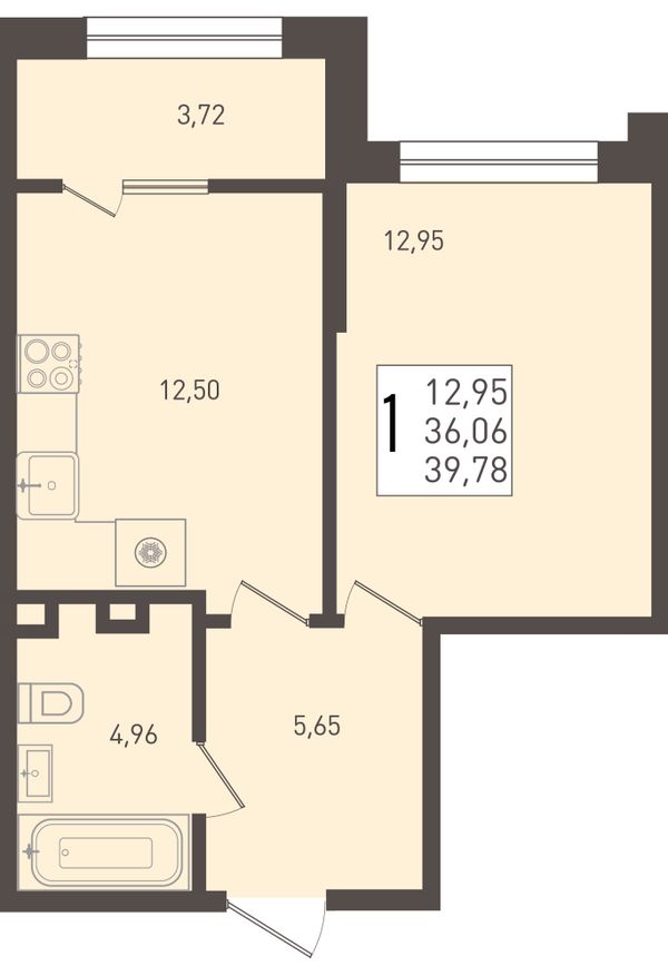 1-комнатная — 39,78 м²