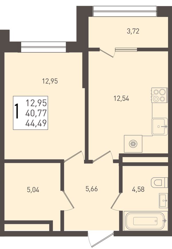 1-комнатная — 44,49 м²