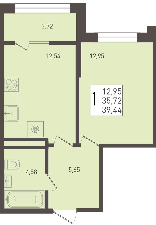 1-комнатная — 39,44 м²