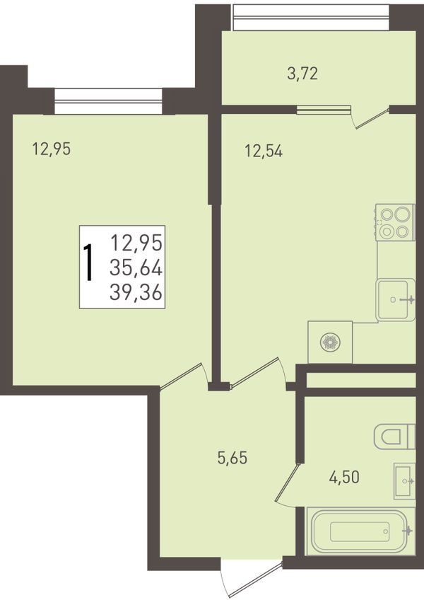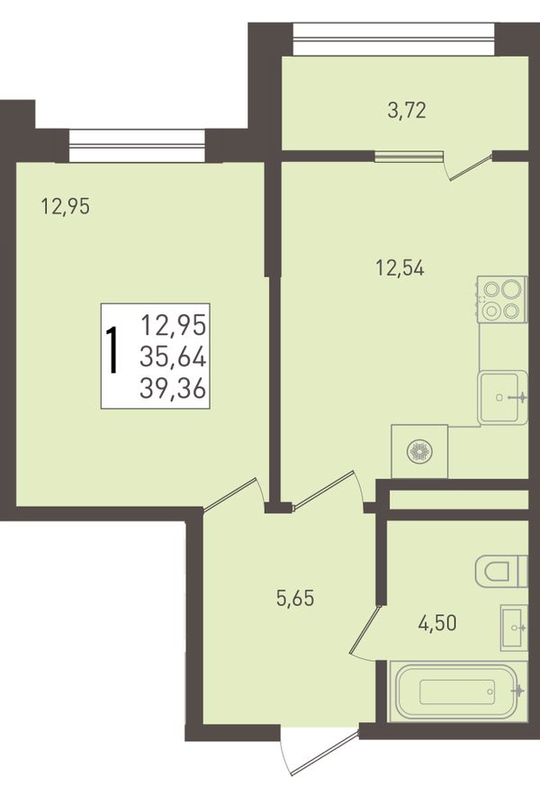 1-комнатная — 39,36 м²