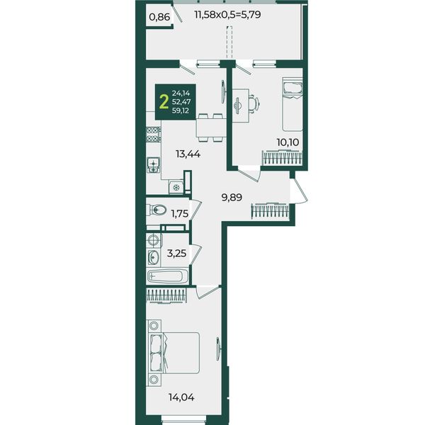 2-комнатная — 59,12 м²