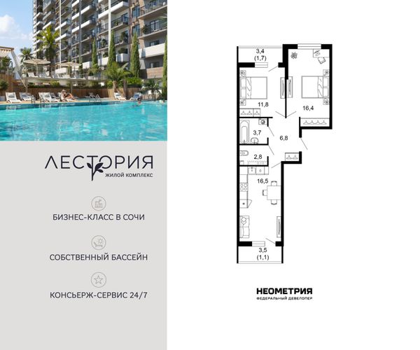 2-комнатная — 64,9 м²