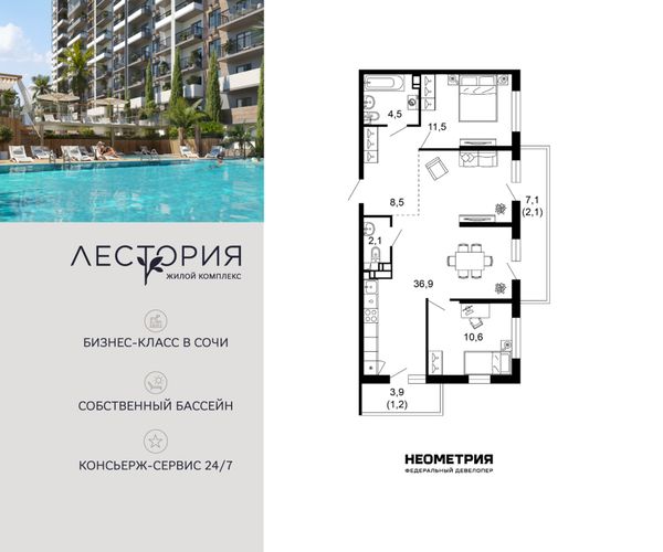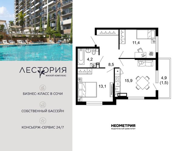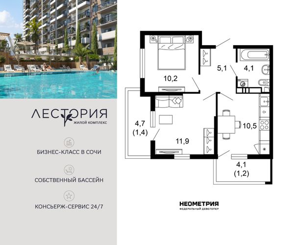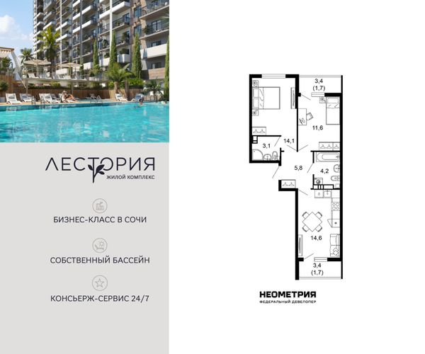 Купить двухкомнатную квартиру в ЖК «Лестория» в Сочи в Краснодарском крае