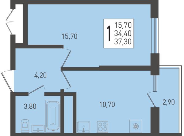 1-комнатная37,3 м²Краснодарский край, посёлок Берёзовый, Целиноградская улица, 2Ик2