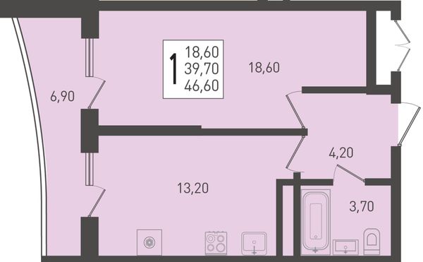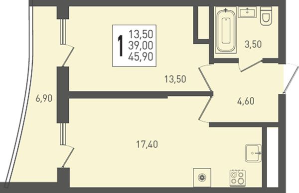 1-комнатная46,2 м²Краснодарский край, посёлок Берёзовый, Целиноградская улица, 2Ик2