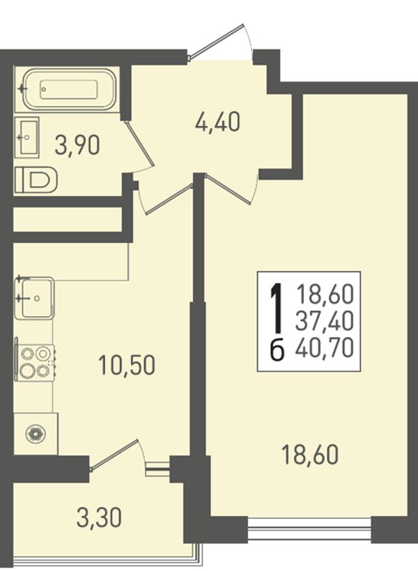 1-комнатная40,7 м²Краснодарский край, посёлок Берёзовый, Целиноградская улица, 2И