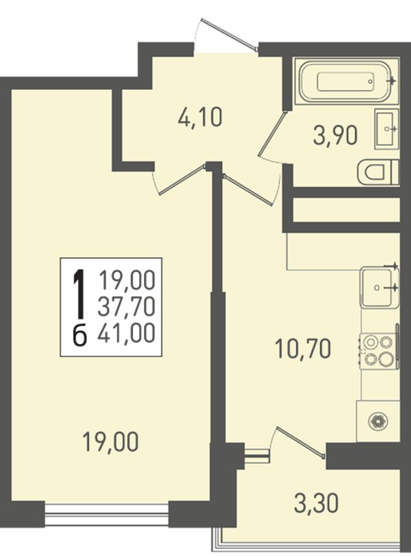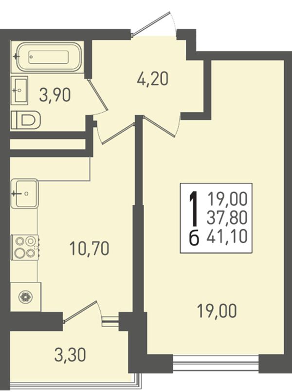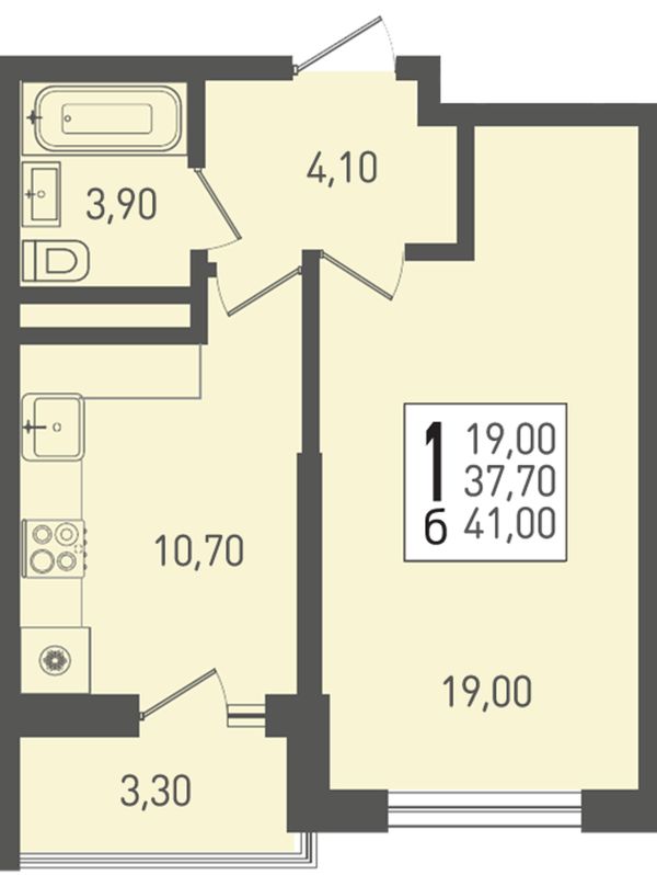 1-комнатная41,1 м²Краснодарский край, посёлок Берёзовый, Целиноградская улица, 2И