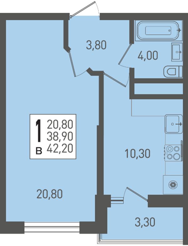 1-комнатная42,4 м²Краснодарский край, посёлок Берёзовый, Целиноградская улица, 2И