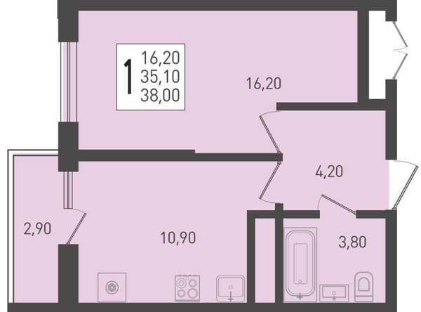 1-комнатная37,8 м²Краснодарский край, посёлок Берёзовый, Целиноградская улица, 2Ик2