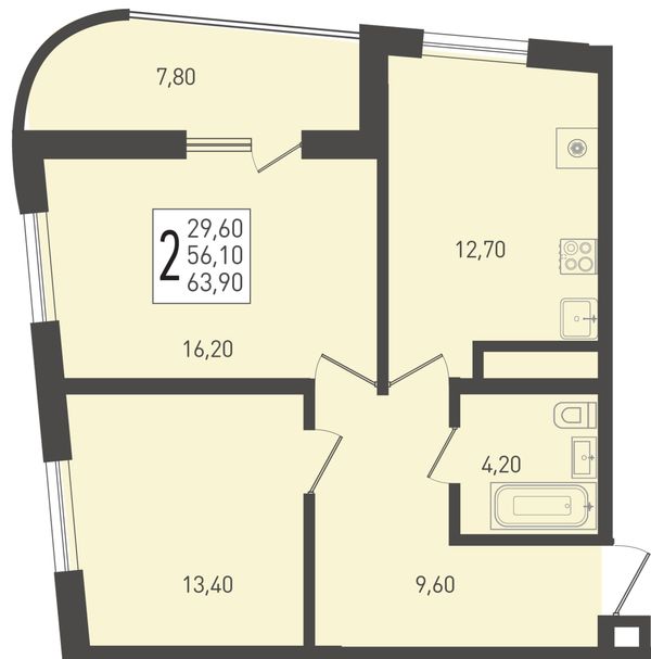 2-комнатная — 63,7 м²