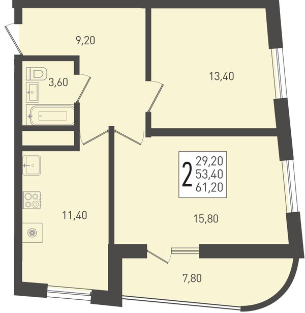2-комнатная — 61,2 м²