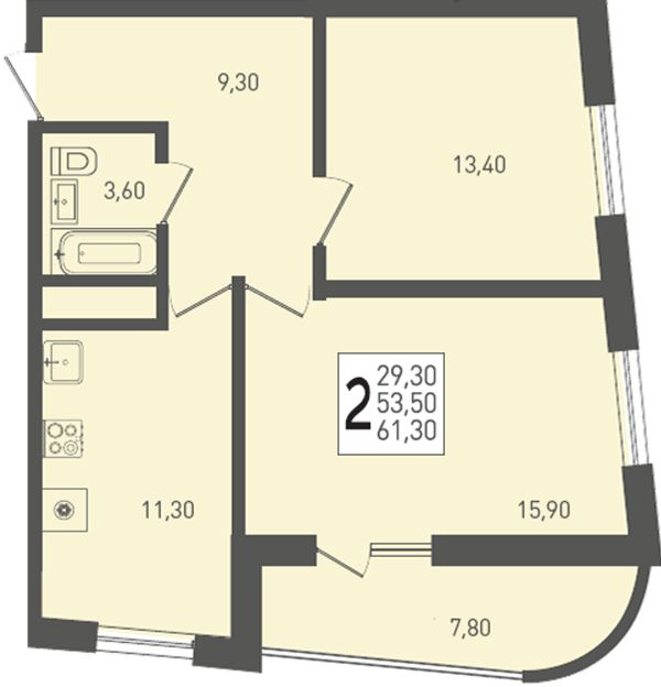 2-комнатная — 61,3 м²