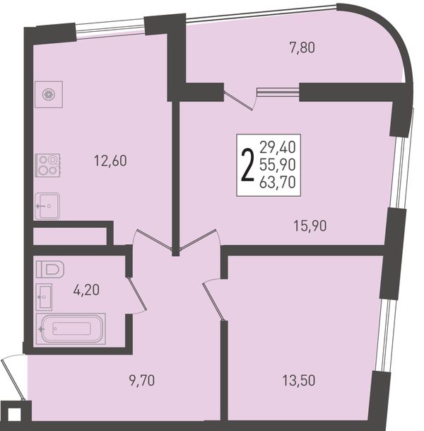2-комнатная — 63,5 м²