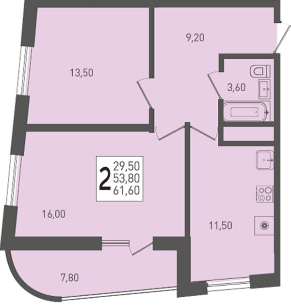 2-комнатная — 61,6 м²