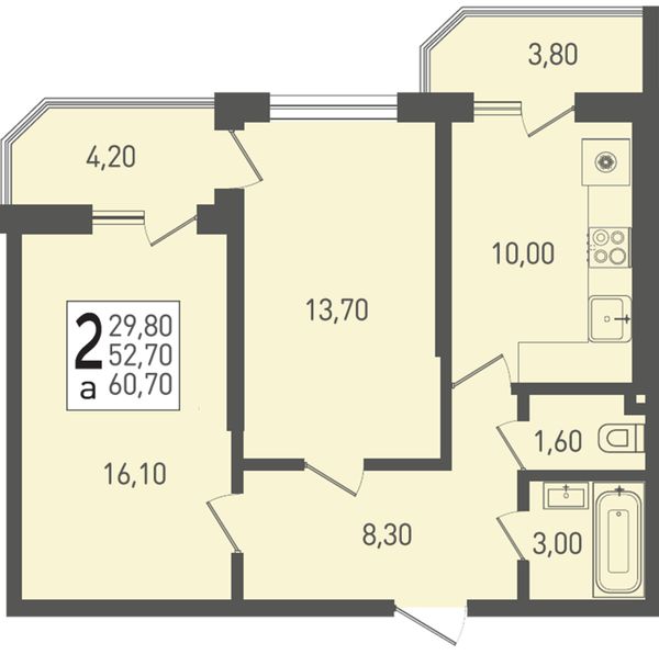 2-комнатная — 60,7 м²