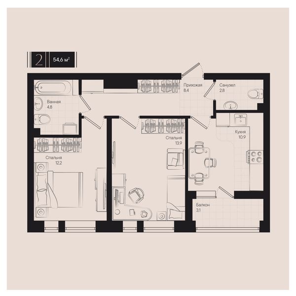 Купить двухкомнатную квартиру в ЖК «Эрмитаж» в Краснодаре