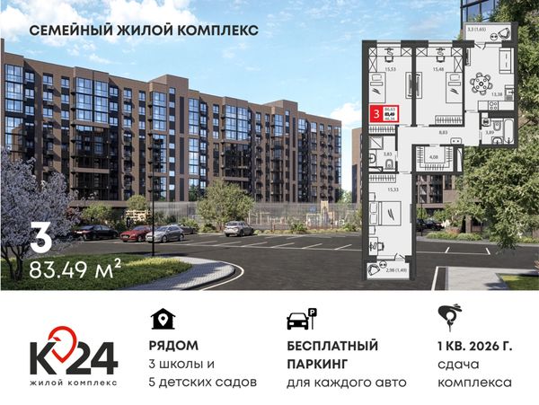Купить трёхкомнатную квартиру в ЖК «К24» в Краснодаре