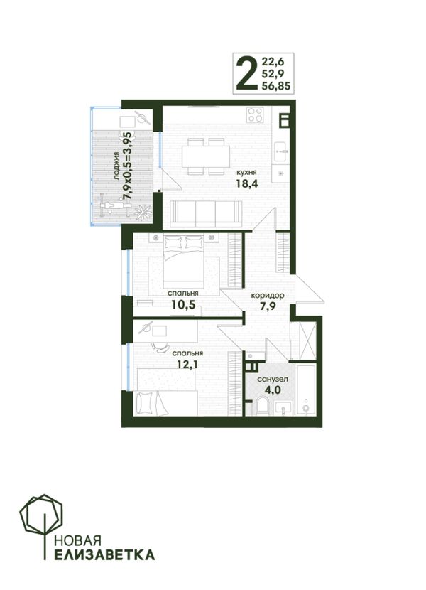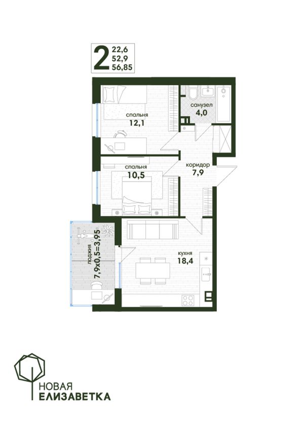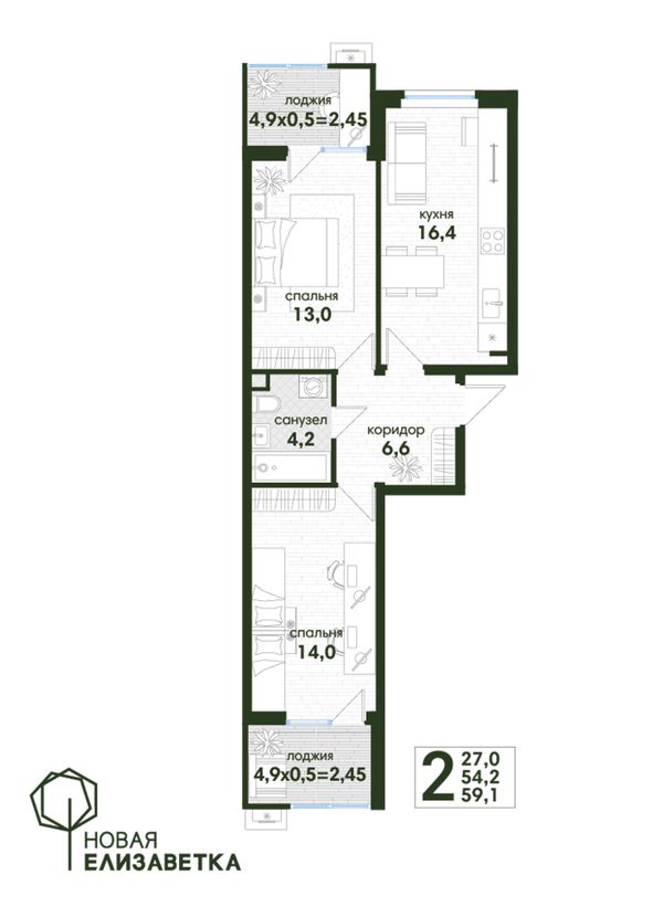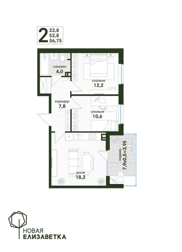 Купить двухкомнатную квартиру в ЖК «Новая Елизаветка» в Краснодаре
