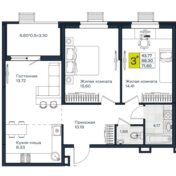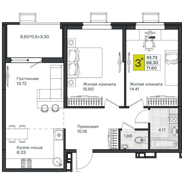 Купить трёхкомнатную квартиру в ЖК «МОНО Квартал» в Берёзовом в Краснодарском крае