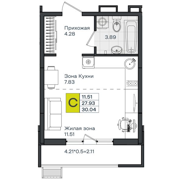 Студия29,9 м²Краснодарский край, посёлок Берёзовый, улица имени Профессора Малигонова