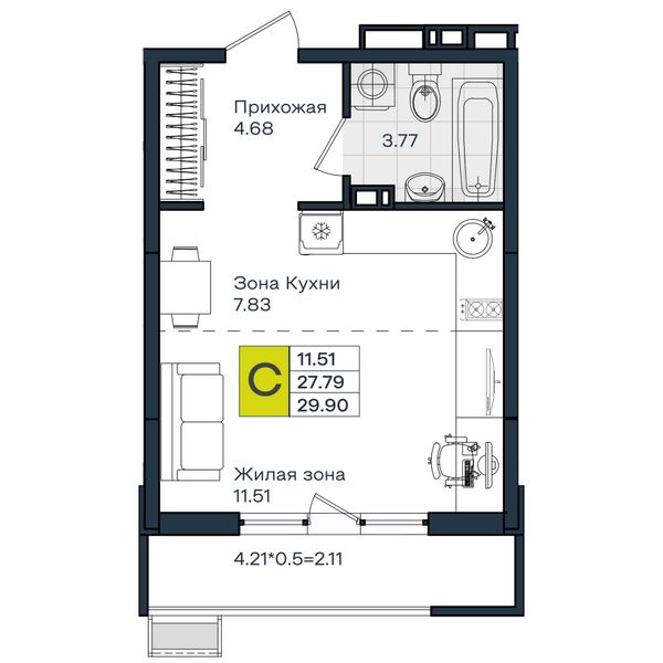 Купить квартиру-студию в ЖК «МОНО Квартал» в Берёзовом в Краснодарском крае