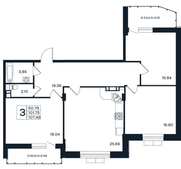 3-комнатная — 107,48 м²