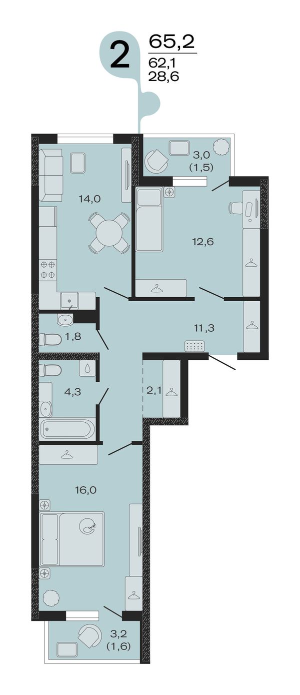 Купить двухкомнатную квартиру в ЖК «ЭВО» в Новокубанске в Краснодарском крае