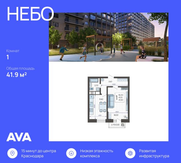 Купить однокомнатную квартиру в ЖК «Небо» в Краснодаре