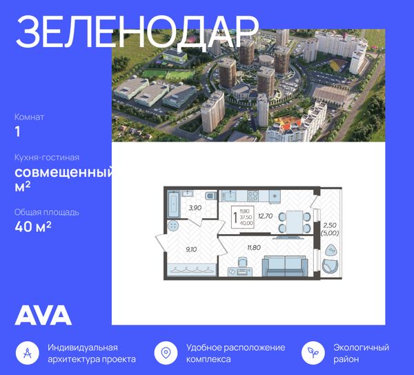 Купить однокомнатную квартиру в ЖК «Зеленодар» в Краснодаре
