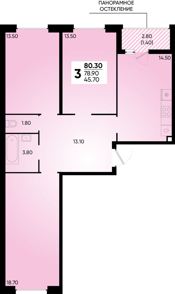 3-комнатная — 78,7 м²