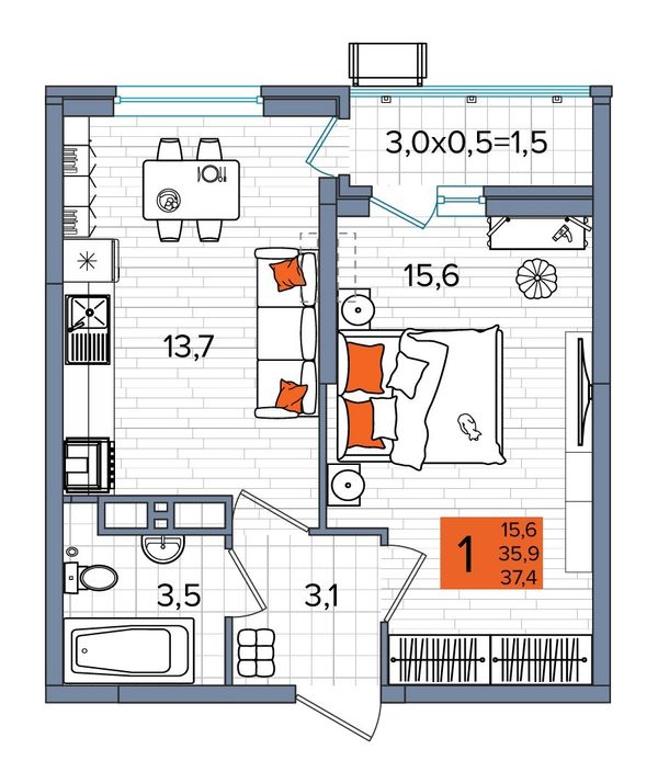 Купить однокомнатную квартиру в ЖК «Сармат» в Краснодаре