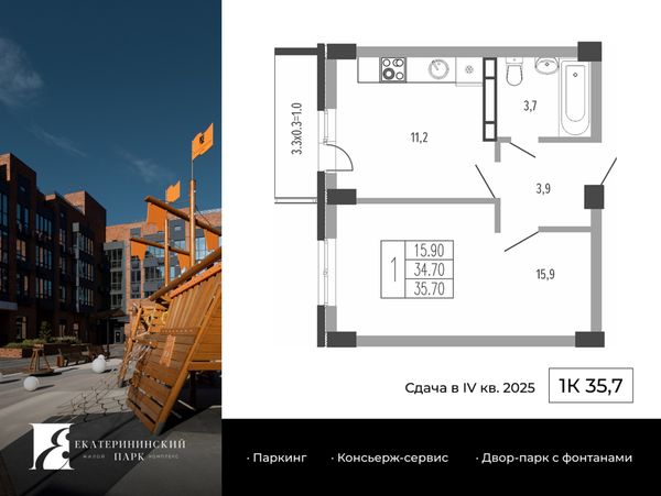 Купить однокомнатную квартиру в ЖК «Екатерининский парк» в Краснодаре