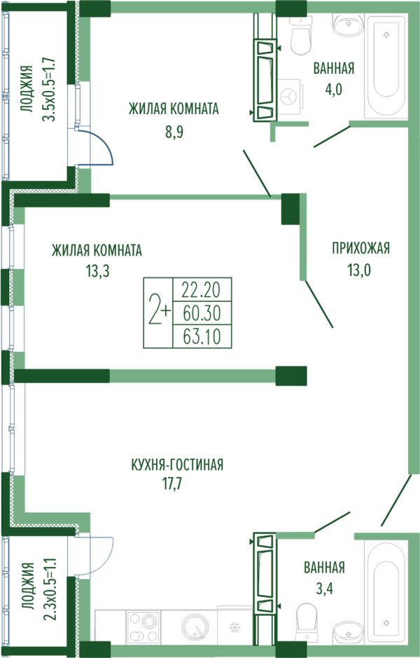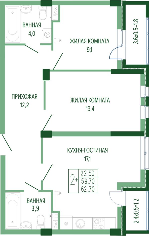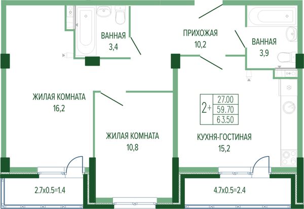 Купить двухкомнатную квартиру в ЖК «Екатерининский парк» в Краснодаре