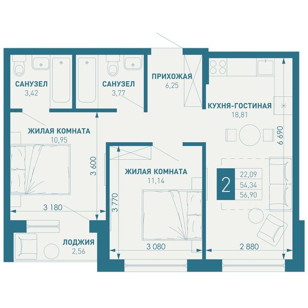 2-комнатная60,1 м²Краснодарский край, Краснодар, Душистая улица