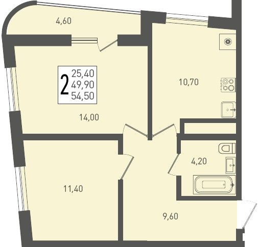 2-комнатная — 54,5 м²