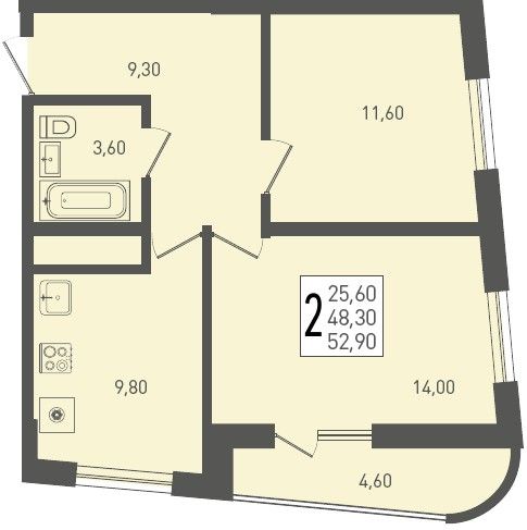 2-комнатная — 52,9 м²