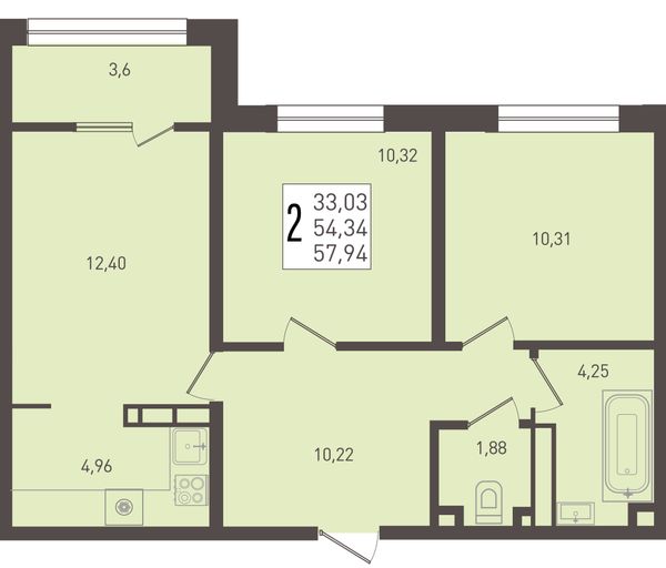 2-комнатная — 57,94 м²